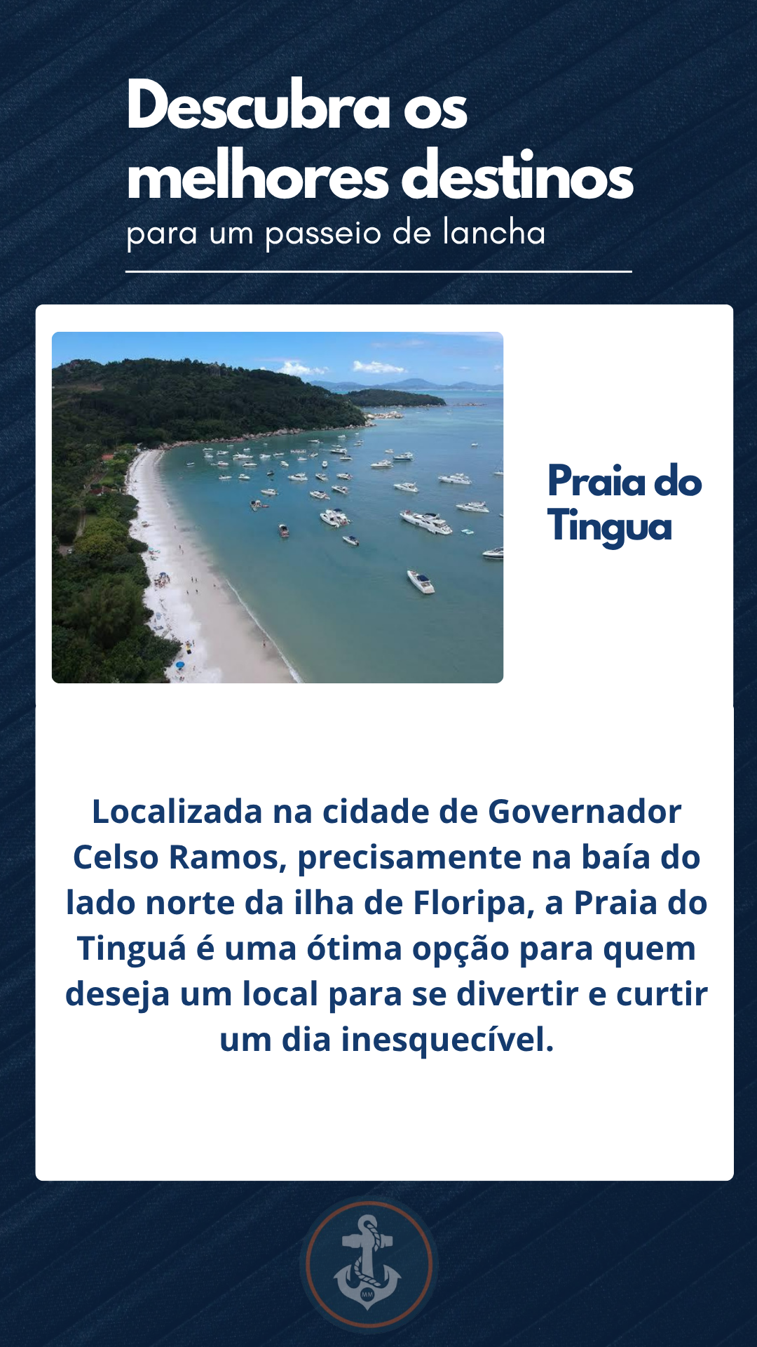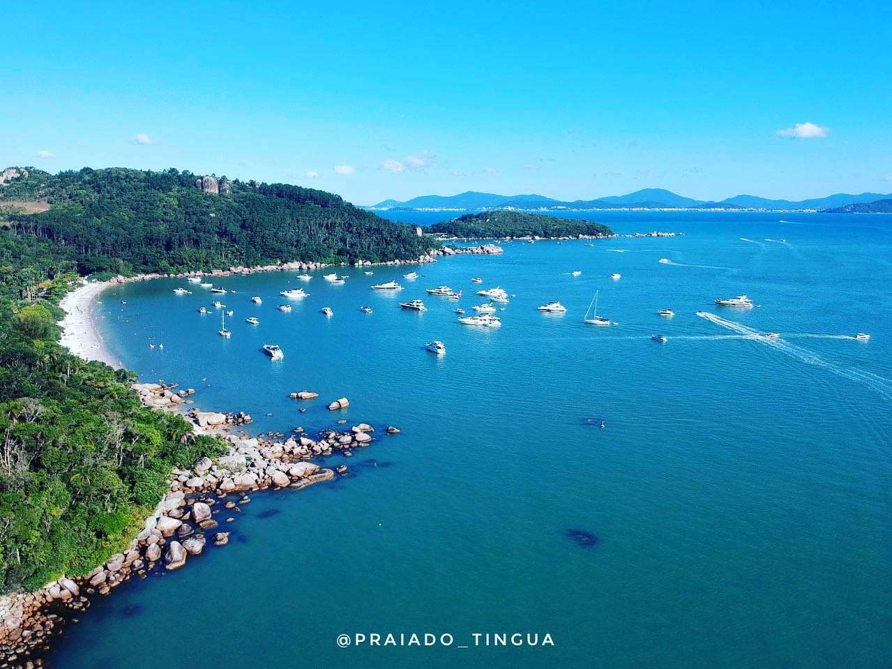 Descrição: A Praia do Tinguá é Localizada na cidade de Governador Celso Ramos, precisamente na baía do lado norte da ilha de Floripa, a Praia do Tinguá é uma ótima opção para quem deseja um local para se divertir e curtir um dia inesquecível. A Iha do francês s é Localizada em frente às praias do norte de Floripa, a Ilha do Francês é uma verdadeira jóia, recoberta por uma mata verde e exuberante e presenteada com duas pequenas praias de costas para o oceano, com areias brancas, águas tranquilas e abrigadas, destino perfeito para um passeio de lancha.